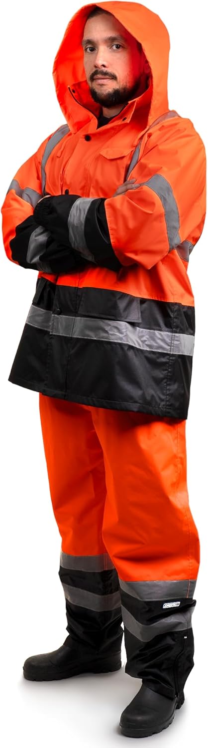 The ORESTECH Hi-Visibility Waterproof Safety Rain Pants are an exceptional choice for anyone looking for Best Hi-Vis Work Pants for Men that blend safety, durability, and practicality. Crafted from 100% Polyester, these pants are Made in the USA or Imported, offering reliable quality for demanding outdoor environments. The Orange and Black design, paired with Reflective Stripes, ensures that wearers maintain High-visibility safety rain pants standards during work, while the ANSI/ISEA 107 Class E Level 2 certification confirms compliance when paired with a Compliant upper garment. On a rainy construction site, I noticed the Sewn-in 2-inch reflective tape dramatically improved Low-light visibility, making workers easy to spot even in heavy downpours.