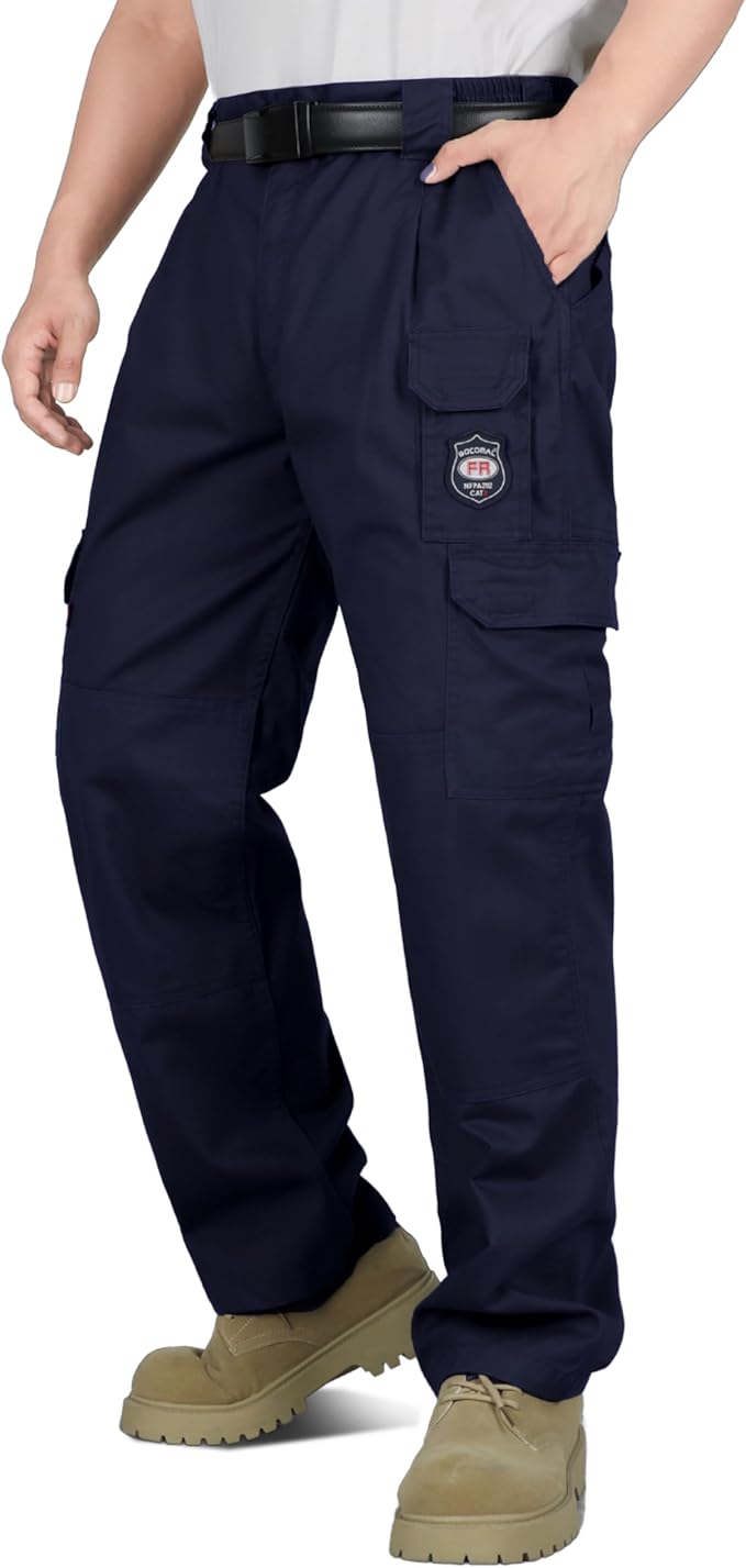 The BOCOMAL Men’s FR Cargo Pants Flame Resistant Pants Midweight 7.5oz (7 Pockets) Multi-Pockets FR Pants are engineered for professionals who need durable fabrics and reliable protection during demanding industrial works. Crafted from 100% Cotton and 7.5OZ Cotton Twill FR Treated, these pants are Imported and designed to be soft, comfortable, and relaxed Fit while maintaining flame resistant integrity. The Machine Wash friendly design ensures easy care, while the prewash and preshrunk treatment keeps them wrinkle-free over repeated use. This makes them a practical choice for Adult industrial workers, including welders, fitters, ironworkers, and electricians.